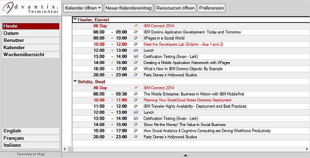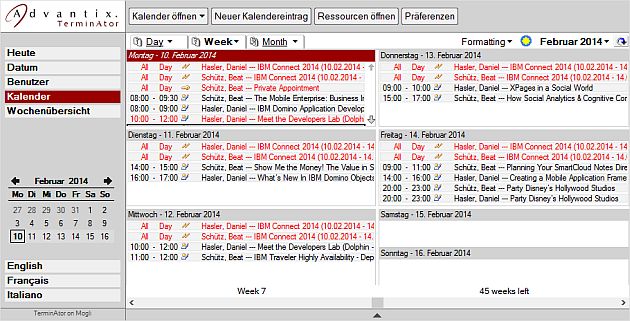 Advantix.Terminator ist eine optimale Ergänzung zur Terminverwaltung unter Lotus Notes. Die angebotenen Übersichten erlauben Ihnen raschen Einblick in die Belegung von Mitarbeitern. |